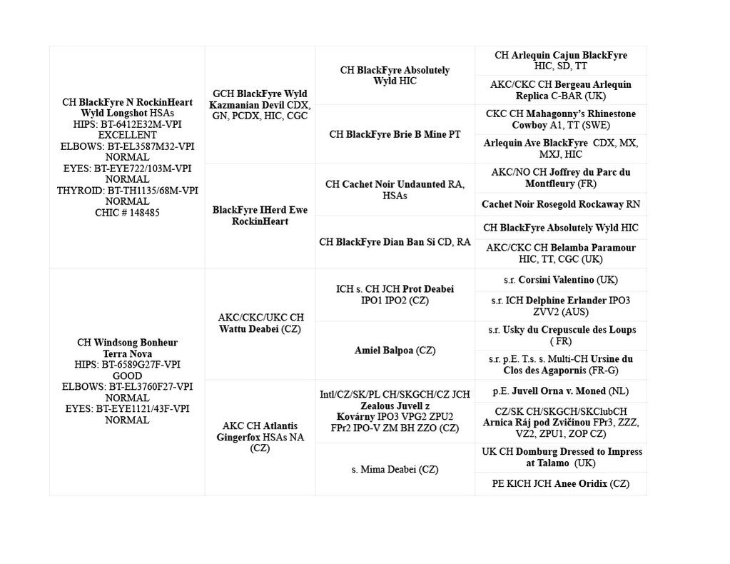 Sire: CH BlackFrye N Rockin Heart Wyld Longshot HSAs